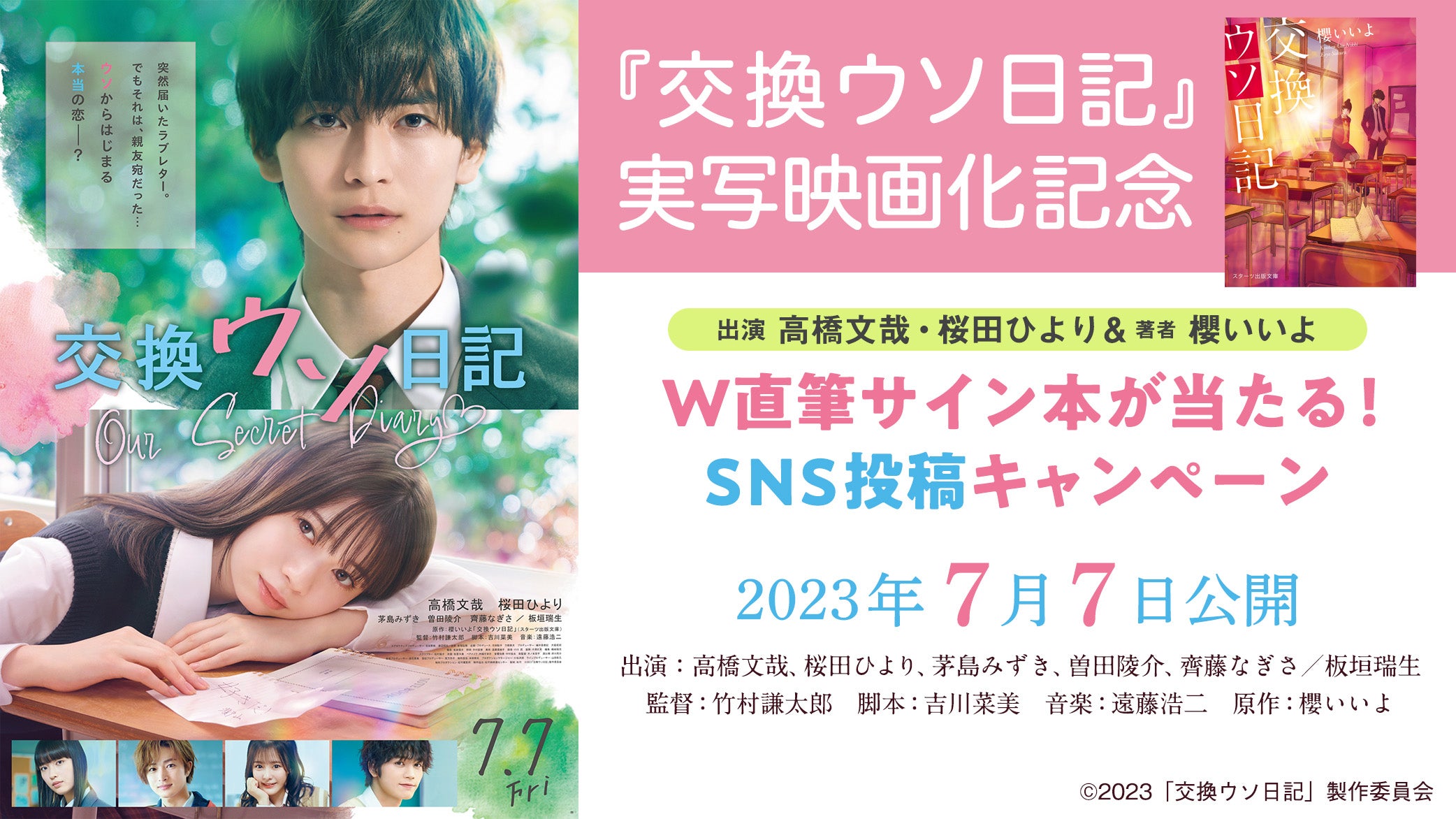 Twitterで「#交換ウソ日記が好きだ」をつけて映画&原作に関するツイートを投稿しよう!抽選で、高橋文哉・桜田ひより & 櫻いいよのW直筆サイン本をプレゼント