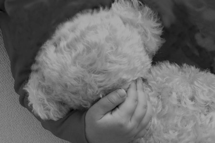 大好きなクマのぬいぐるみを抱きしめて、