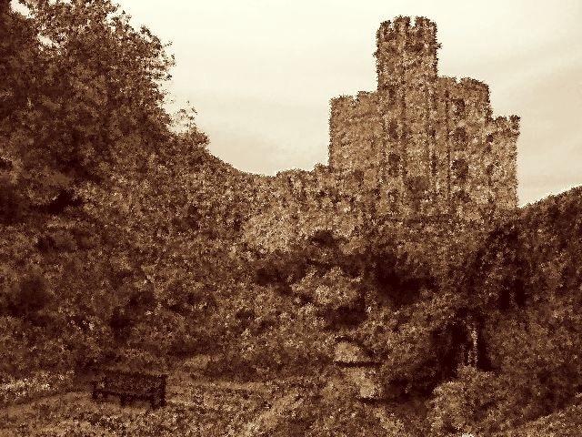 城館を照らす夕暮れの斜光がまぶしい。