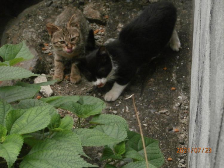 おなかが大きい時のやんやん 2021.6.13 朝の仕事のマンションの隠れ隙間に いつもやんやんが待っている。 やんやんはのらちゃん にゃんにゃんと呼んでいたけど、 訛って、やんやんになった。 2匹の子猫を見せに連れてきた 今どき、人間より義理がたい 道路下の地下トンネルを通って、子供を連れてきたやんやん やんやんについてきた子供たち