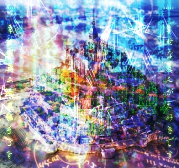 何百もの虹色の水龍が大気へと