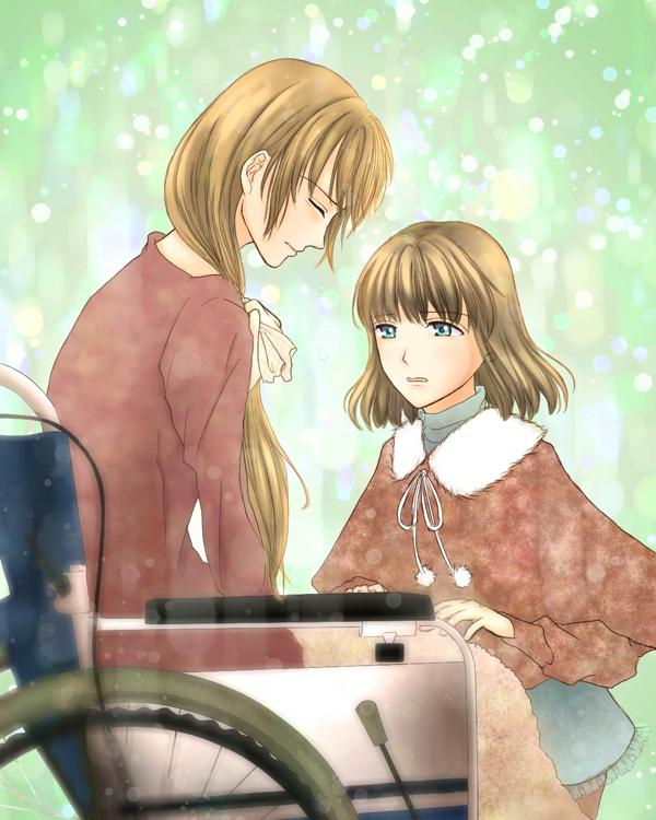 やがて身の高さを変えぬままベッドのこちら側に現れた姿は、車椅子に座っていて、膝の上には厚手のブランケットが覆い被さっていた。