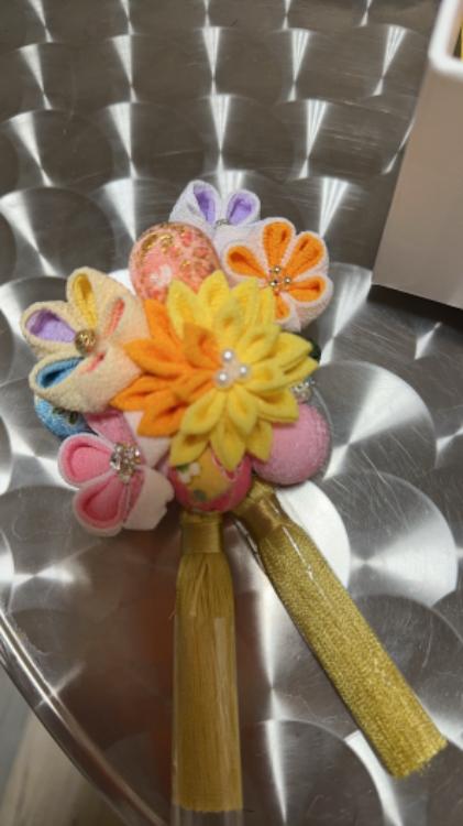 振り袖の柄に合わせて作ってくれた髪飾りです