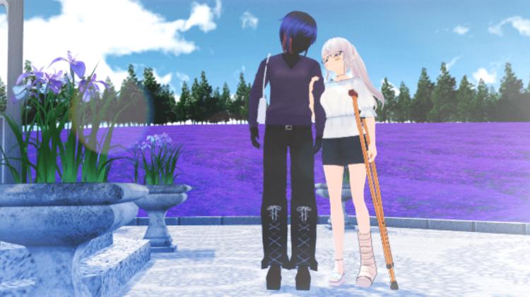 私は彼と松葉杖に支えられながら、畑の斜面を登った。