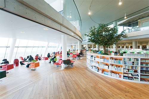 神田外語大学 大学紹介 7号館屋上カフェ・図書館